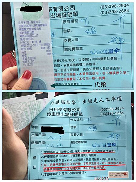 會給你發票以及一張藍色證明單(記住絕對要收好),接著告知你去哪裡停車~