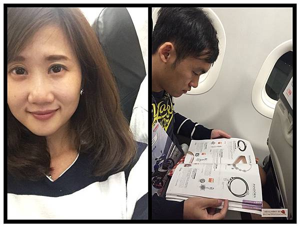 上了飛機,先來一拍~林先生已抓了虎航的購物雜誌來看