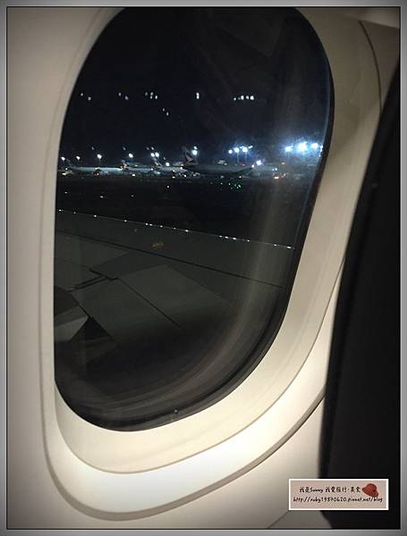 班機原定是晚上7點50起飛但因為要飛的班機多延誤了半個小時才起飛