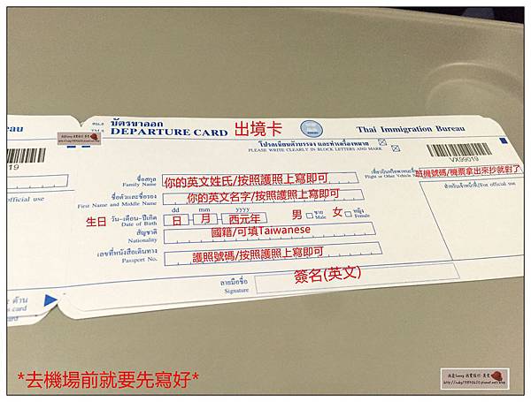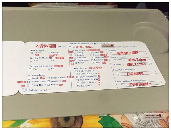 去曼谷時"入境卡"先填好,記得全部都是英文,小方格內不是打"勾"而是"X"