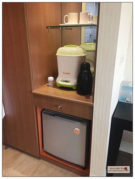每間房間都有消毒鍋、小冰箱及衣櫃