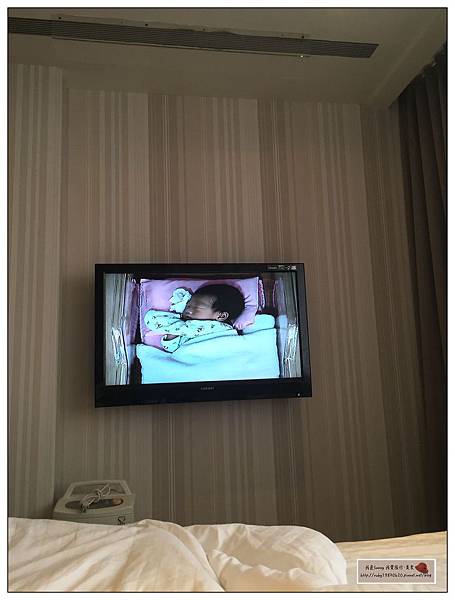 寶寶上方有攝影機,Sunny在房間也可以用電視觀看小麵包的情況