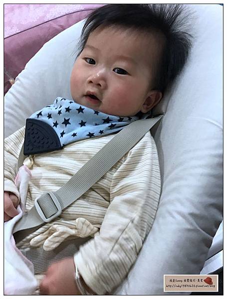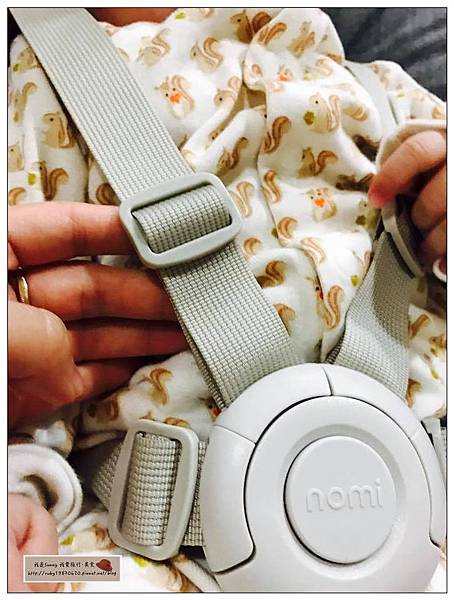 NOMI的躺椅安全帶的部分是五點式可以很安全的包覆住寶寶