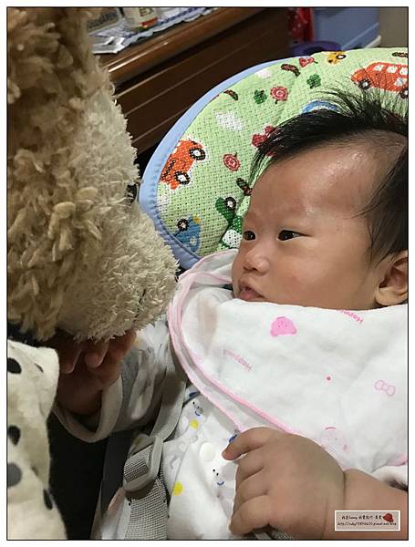 放上透氣墊小麵包的脖子就不會紅紅了,不是材質不好喔!是因為寶寶真的比較怕熱