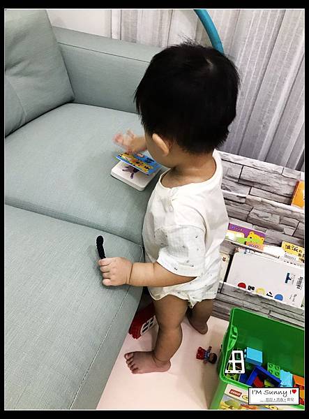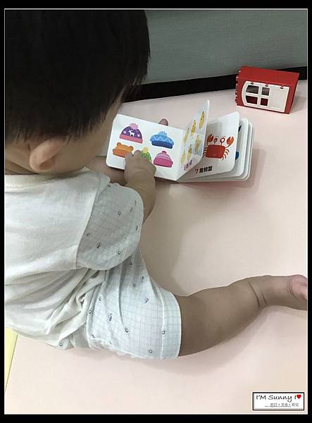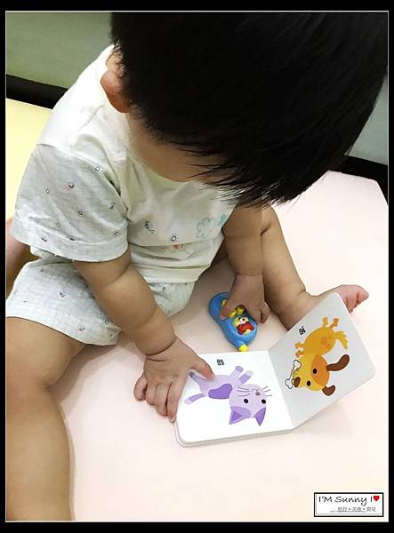 當小麵包打開書時我會在旁跟他介紹圖案讓他認識